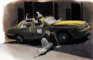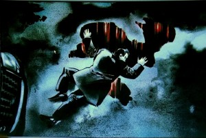 (The first crash dummy “body” flies off of the rooftop and crashes to the